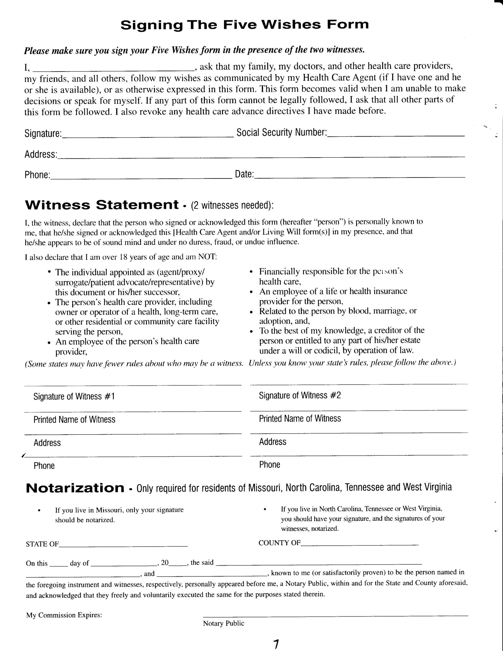 Five Wishes Living Will Free Download – A living will form free printable is a document that explains what types of healthcare and also treatment you intend to get when you’re not capable to mention it. That’s why the document can perhaps bring a peaceful mind to on your own and also your enjoyed ones. Almost everyone can conveniently create one, especially by utilizing a practical Five Wishes Living Will Free Download and also leave their wishes on the treatment they want (or don’t want) to receive.