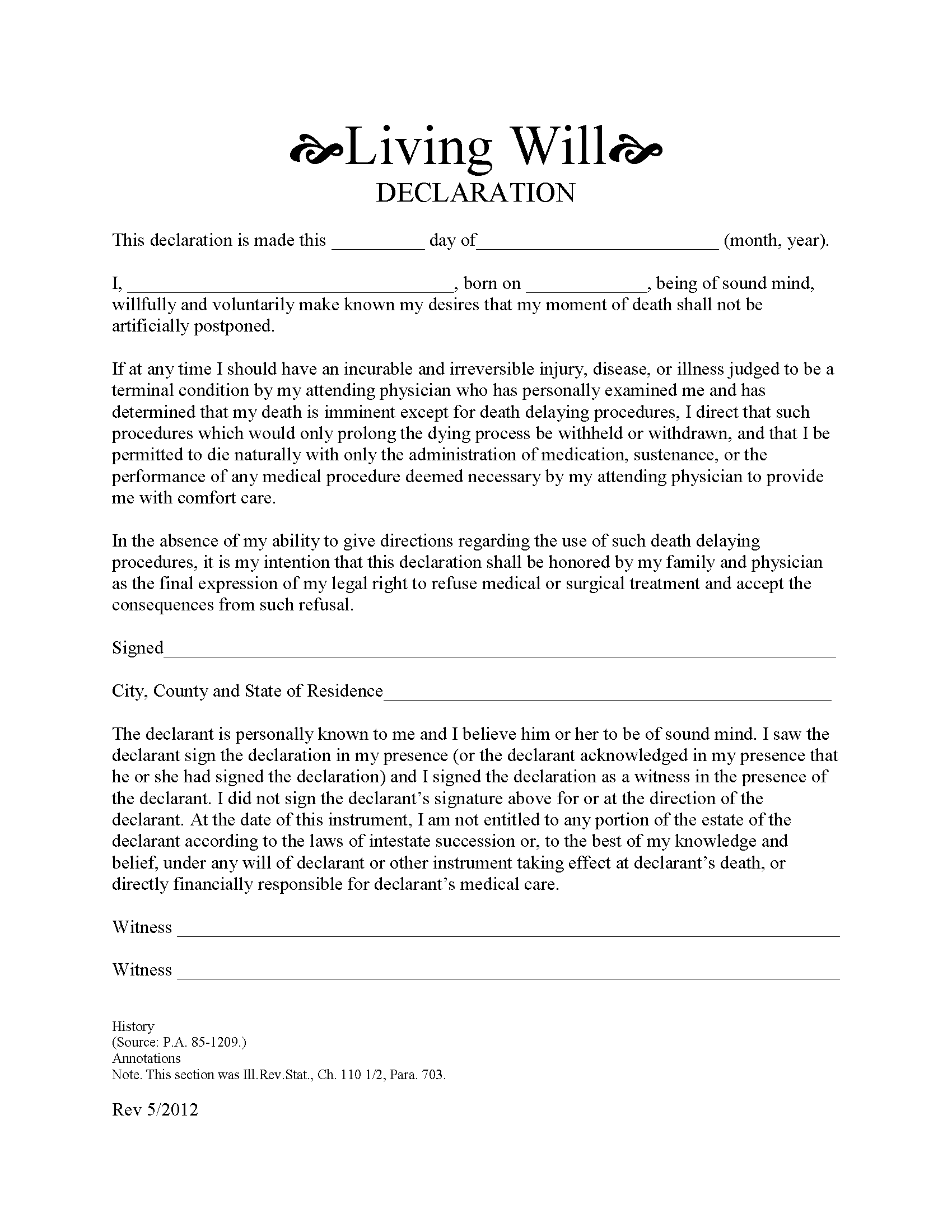 The Form is similar to Do Not Resuscitate (DNR) papers, yet much more general due to the fact that it describes greater than consent for doctor to perform life-saving treatments like MOUTH-TO-MOUTH RESUSCITATION. The Living Will Blank Form is entirely different from the last will as well as testimony document that clarifies how you want your wide range as well as home to be distributed when you died due to the fact that a living will clarify your dreams relating to healthcare while you’re still living.