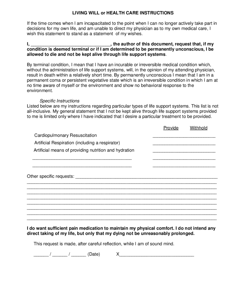 The Form is similar to Do Not Resuscitate (DNR) papers, but a lot more basic since it explains greater than consent for healthcare providers to carry out life-saving treatments like MOUTH-TO-MOUTH RESUSCITATION. The Living Will Form Canada is entirely various from the last will as well as testament document that discusses how you want your riches as well as building to be distributed when you died due to the fact that a living will clarify your desires relating to treatment while you’re still living.