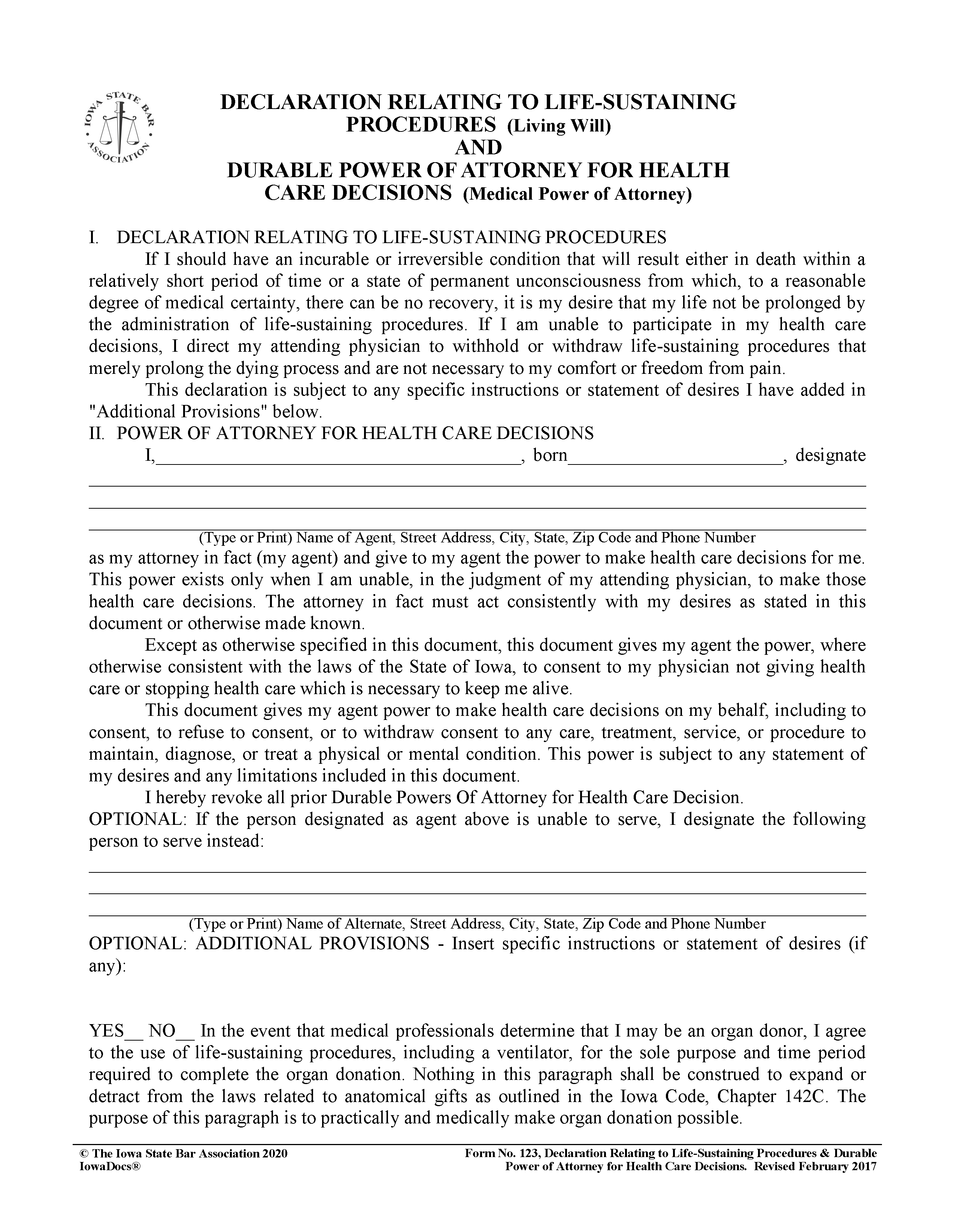 The Living Will Form Iowa Free is taken into consideration as an advance regulation in a lot of states that permits a clinical power of attorney to lets a trusted individual develop medical determinations on your account. That’s why this document is sometimes referred health care instruction, breakthrough wellness care regulation, or development medical directive.