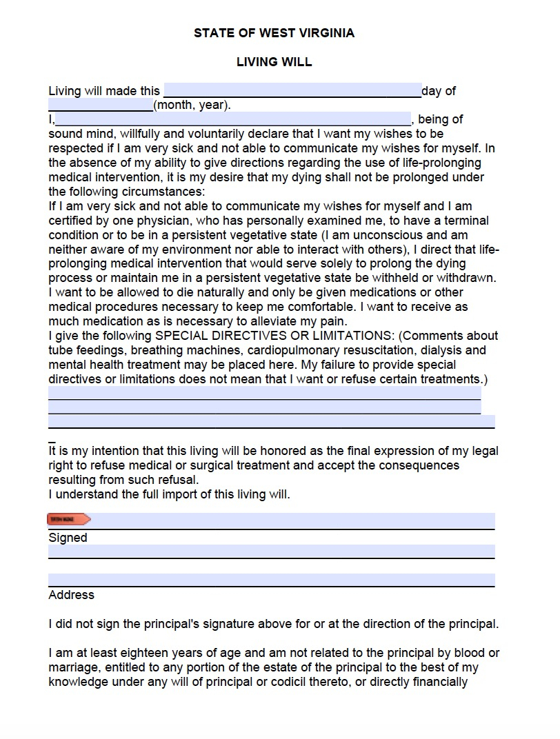West Virginia Living Will Form Advance Directive