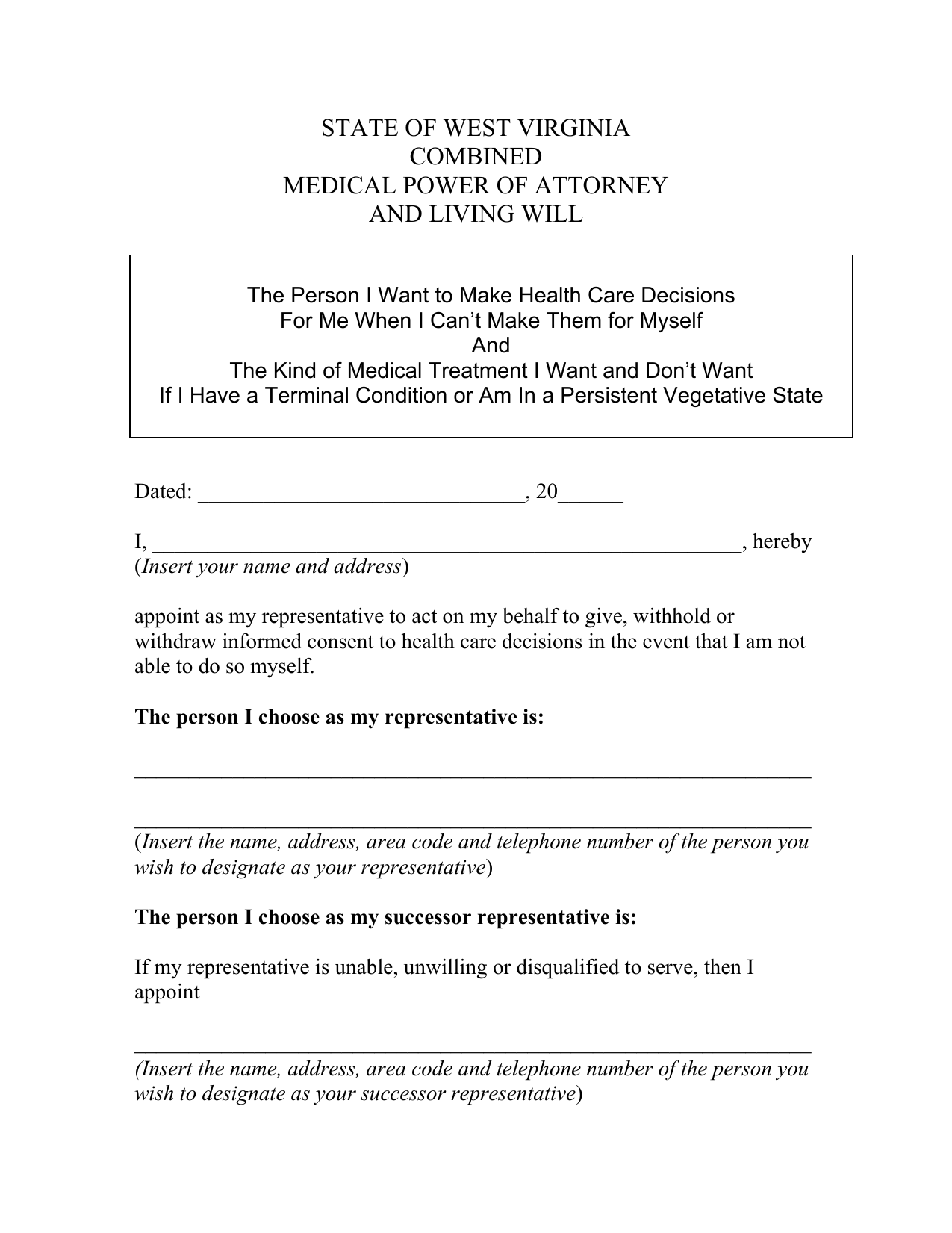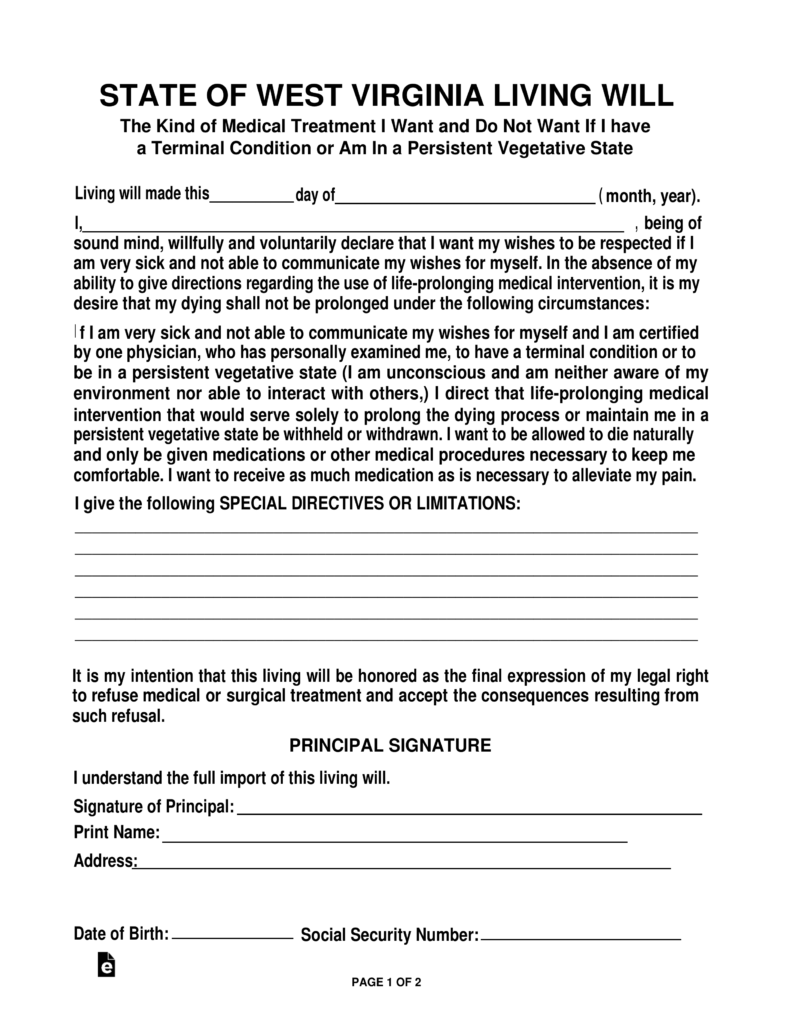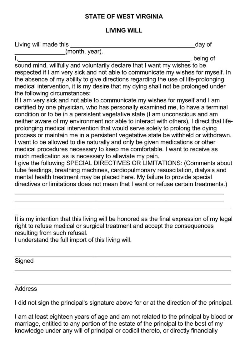 Living Will Form West Virginia – A living will form free printable is a document that discusses what types of medical care as well as treatment you intend to receive when you’re not qualified to discuss it. That’s why the document can potentially bring a relaxed mind to on your own and your liked ones. Almost everybody can quickly create one, specifically by using a practical Living Will Form West Virginia and leave their dreams on the treatment they want (or don’t desire) to get.