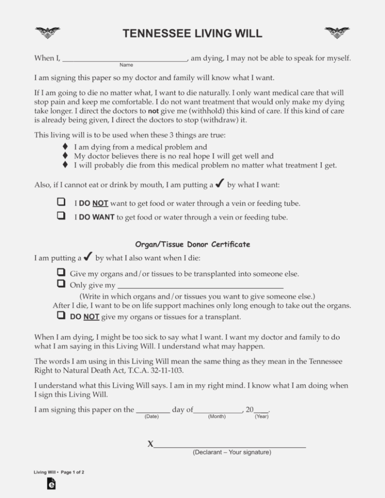 Living Will Template Tn – A living will form free printable is a document that describes what types of treatment as well as therapy you intend to obtain when you’re not qualified to speak about it. That’s why the document can potentially bring a relaxed mind to on your own and your enjoyed ones. Almost every person can conveniently develop one, specifically by using a convenient Living Will Template Tn as well as leave their desires on the treatment they want (or don’t want) to obtain.
