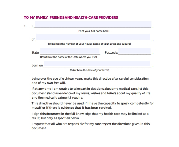 Medical Directive Forms Printable – When you’re not qualified to talk concerning it, a living will form free printable is a document that describes what types of medical care and also treatment you want to get. That’s why the document can perhaps bring a calm mind to on your own and also your enjoyed ones. Virtually everyone can easily create one, specifically by utilizing a hassle-free Medical Directive Forms Printable and leave their wishes on the care they desire (or do not desire) to get.