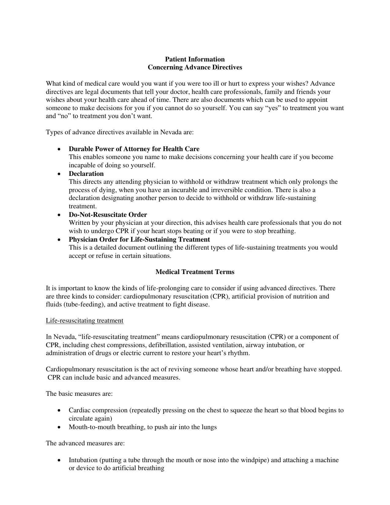 The Nevada Living Will Form Free is considered as an advance directive in many states that enables a medical power of attorney to lets a relied on individual develop medical determinations on your account. That’s why this document is occasionally referred health care regulation, advance health care instruction, or advancement medical directive also.