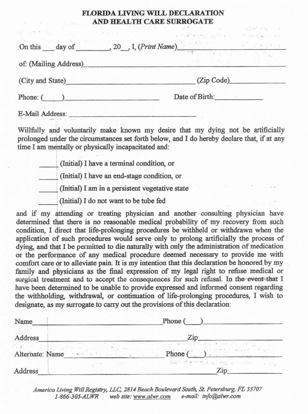 Simple Living Will Form Florida – A living will form free printable is a document that describes what kinds of treatment and therapy you want to receive when you’re not qualified to speak about it. That’s why the document can perhaps bring a serene mind to on your own and also your loved ones. Nearly everybody can conveniently create one, particularly by using a convenient Simple Living Will Form Florida and leave their wishes on the care they desire (or don’t desire) to obtain.